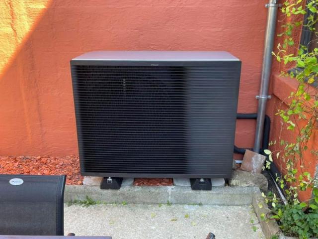 Installation et mise en service d’une pompe à chaleur Daikin Altherma Quintessence avec production d’eau chaude en remplacement d’une chaudière fioul.